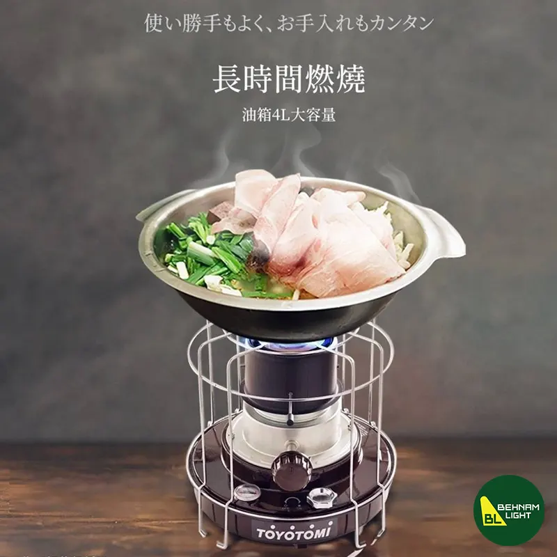 بخاری نفتی چندکاره تویوتومی مدل K-30F اورجینال با قدرت گرمایشی 2.25 کیلووات، ظرفیت مخزن 4 لیتر، مصرف سوخت 0.209 لیتر/ساعت، وزن 3.6 کیلوگرم و ابعاد 34.2×31.5×34.2 سانتیمتر. مناسب کمپینگ و گرمایش محیط