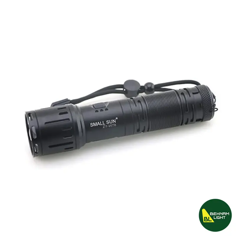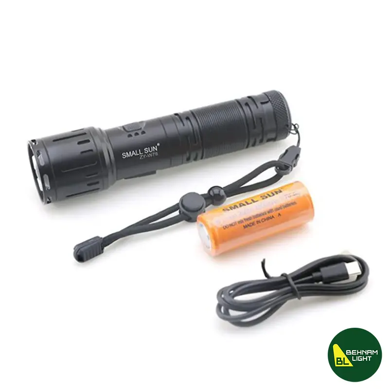 چراغ قوه اسمال سان مدل ZY-W78 با قدرت روشنایی 1100 لومن و برد نور 350 متر، دارای لامپ LED، باتری 4800 میلیآمپر، قابلیت زوم، مناسب کمپینگ، طبیعتگردی و استفاده عمومی، ضد آب نیست