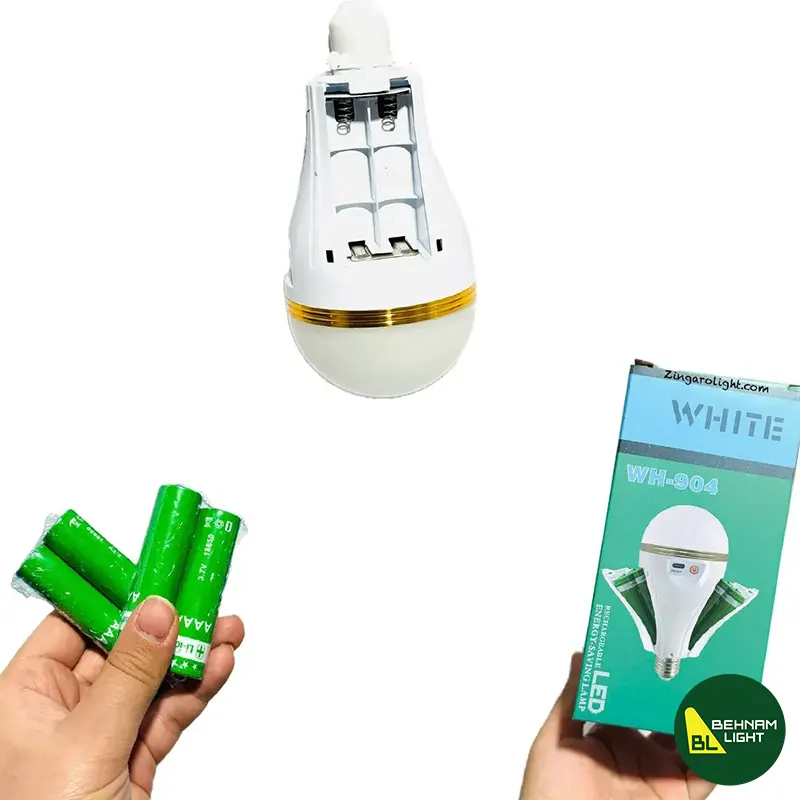 لامپ شارژی 35 وات زینگارو مدل WH-904 با روشنایی 3500 لومن و نور مهتابی 6500K، مجهز به باتری شارژی و پورت 5V DC، قابل شارژ با پاوربانک و شارژر موبایل، مناسب کمپینگ، سفر و استفاده اضطراری