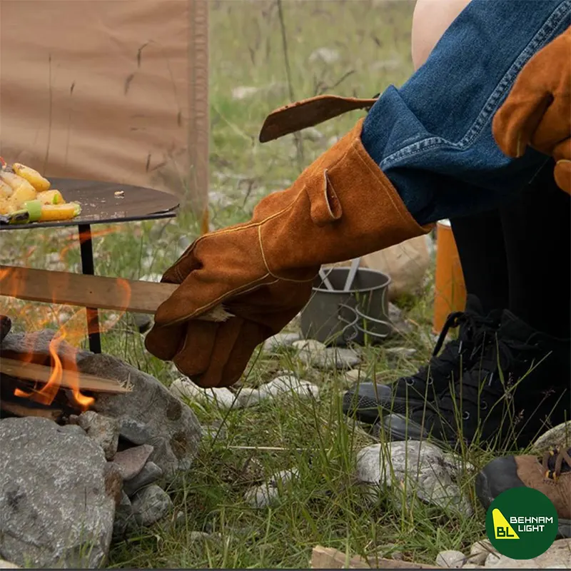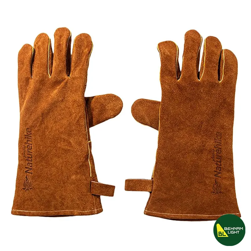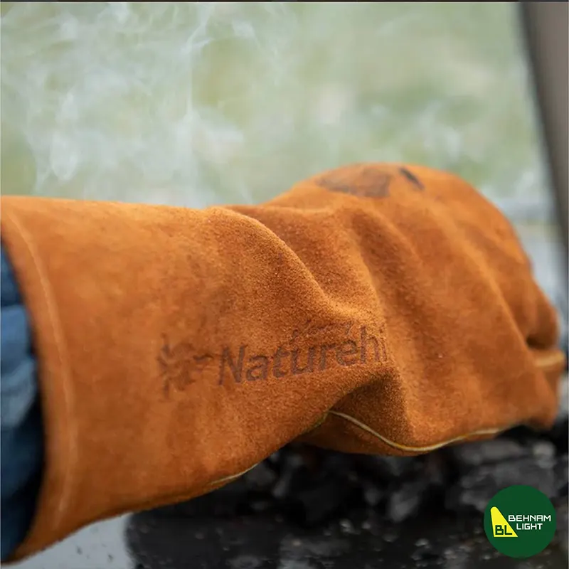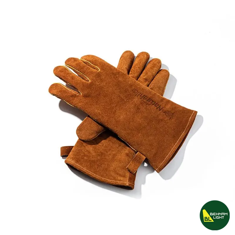 دستکش عایق حرارتی نیچرهایک مدل GP-02 با رنگ قهوهای و جنس لایه بیرونی چرم طبیعی گاوی، طراحی شده است. این دستکش دارای لایه میانی با روکش فویلی و ابعاد 35 × 14 سانتیمتر است