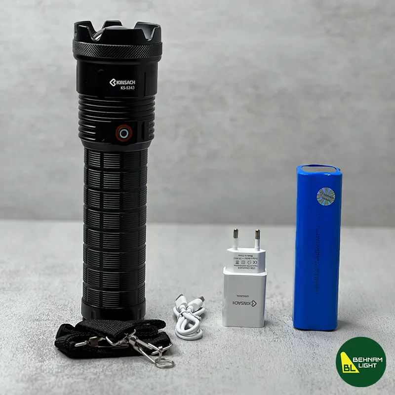 چراغ قوه کینساچ مدل S343 دارای قدرت روشنایی 5000 لومن است.