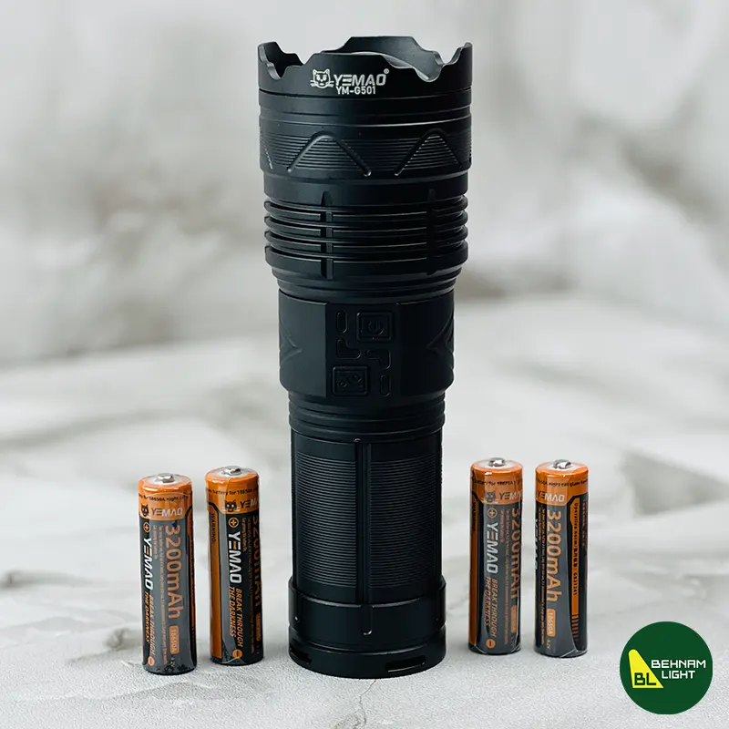| قابلیت استفاده طولانی مدت | با باتریهای قدرتمند و طراحی بهینه، چراغ قوه YM-G501 میتواند ساعتها بدون نیاز به شارژ مجدد کار کند. این ویژگی برای سفرهای طولانی، فعالیتهای ماجراجویانه و استفاده حرفهای بسیار مفید است |