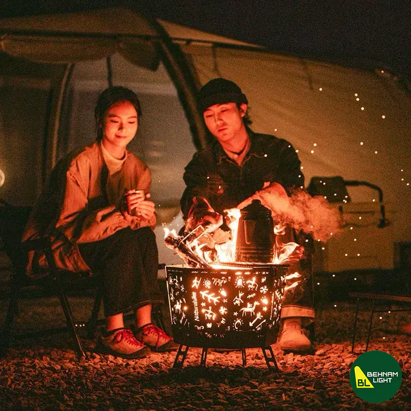 | الگوهای برشخورده زیبا روی بدنه | بدنه اجاق دارای برشهای تزئینی به شکل حیوانات و نقوش خاص است. هنگام روشن شدن آتش، نور از این الگوها عبور میکند و جلوهای چشمنواز به محیط میدهد. این طراحی خاص، علاوه بر کارایی، زیبایی و حس متفاوتی به تجربه کمپینگ شما اضافه میکند |