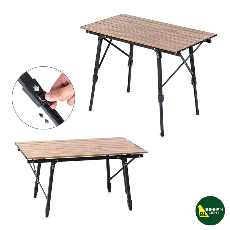 | قابلیت تنظیم ارتفاع | (3 یا 4 سطح با قفل تلسکوپی), پایههای تلسکوپی با قفل مقاوم امکان تنظیم ارتفاع میز را در 3 یا 4 سطح فراهم میکنند. کاربران میتوانند میز را با توجه به نیاز خود برای نشستن روی زمین، صندلی یا ایستادن تنظیم کرده و راحتی بیشتری داشته باشند |
