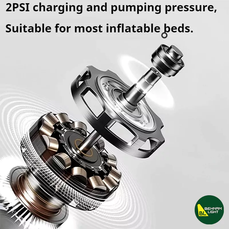 | توان مصرفی | (120 وات), موتور 120 واتی پمپ قدرت بالایی برای پمپاژ سریع فراهم میآورد. این توان مصرفی هماهنگ با خروجی بالا، امکان باد کردن وسایل بزرگی مثل قایق بادی یا تشک بزرگ را در زمان کوتاه فراهم میسازد. قدرت موتور نشاندهنده عملکرد سریع و کارایی قابل اعتماد دستگاه است |