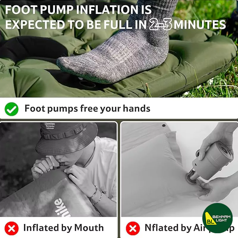 پمپ باد داخلی: یک پمپ پایی کارآمد که در خود زیرانداز تعبیه شده است.