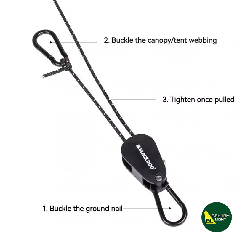 | طول طناب | این تنظیمکننده برای طناب 4 متر طراحی شده است. طول استاندارد آن امکان نصب چادر، سایبان یا تجهیزات اضطراری را فراهم میکند و بهراحتی جمع و در کیف کوچک قرار میگیرد و فضای کمی اشغال میکند |