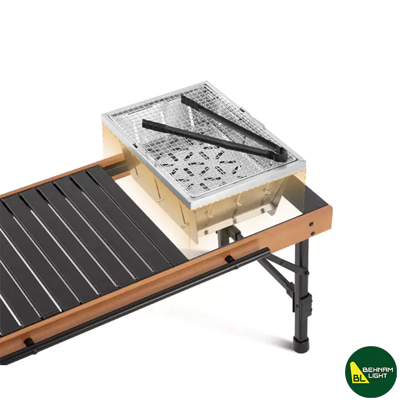 | مقاومت در برابر حرارت | صفحات آلومینیومی و بامبو در برابر حرارت مقاوم هستند. شما میتوانید ظروف داغ یا گریل را بدون نگرانی روی میز قرار دهید. این ویژگی میز را برای آشپزی در فضای باز بسیار کاربردی میکند |