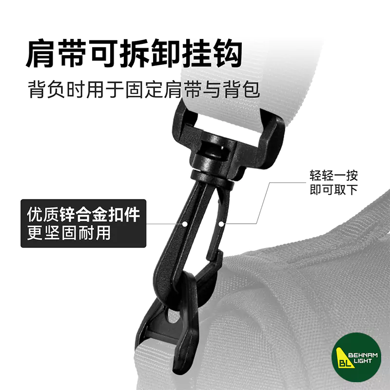 - نحوه حمل : دارای بند شانهای قابل تنظیم و دسته دستی