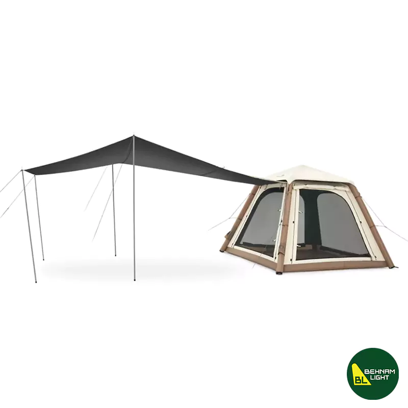 برجستهترین ویژگی این چادر 4 نفره، سیستم راهاندازی بادی آن است. این چادر اتوماتیک به جای تیرکهای فلزی پیچیده، از ستونهای هوای مستحکم بهره میبرد. پمپ برقی داخلی آن که با یک باتری قدرتمند 5000 میلیآمپر ساعتی کار میکند، تمام کار را برای شما انجام میدهد. کافیست چادر را پهن کنید، دکمه را فشار دهید و شاهد باشید که سرپناه جادار شما در عرض چند دقیقه به صورت خودکار شکل میگیرد. این سیستم هوشمند، این چادر نیچرهایک را به گزینهای بینظیر برای خانوادهها، علاقهمندان به گلمپینگ (کمپینگ لوکس) و کسانی که به دنبال حداکثر راحتی در تجهیزات کمپینگ خود هستند، تبدیل کرده است.