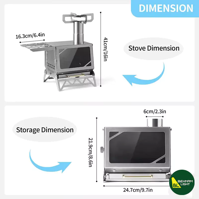 این اجاق به عنوان یک سیستم گرمایشی و پختوپز کارآمد، دارای دودکش قابل تنظیم است که دود را به طور کامل از محیط شما دور کرده و امکان استفاده ایمن در نزدیکی چادر کمپینگ (یا داخل چادرهای مخصوص) را فراهم میکند. سیستم تهویه پیشرفته و قابل کنترل آن، به شما اجازه میدهد تا شدت شعله را مدیریت کرده و با کمترین میزان دود، به احتراق کامل و بهینه دست یابید. این اجاق هیزمی با استفاده از سوختهای طبیعی و در دسترس مانند چوب، برگ و زغال، یک اجاق دوستدار محیط زیست و اقتصادی برای تمام تجهیزات کمپینگ شماست.