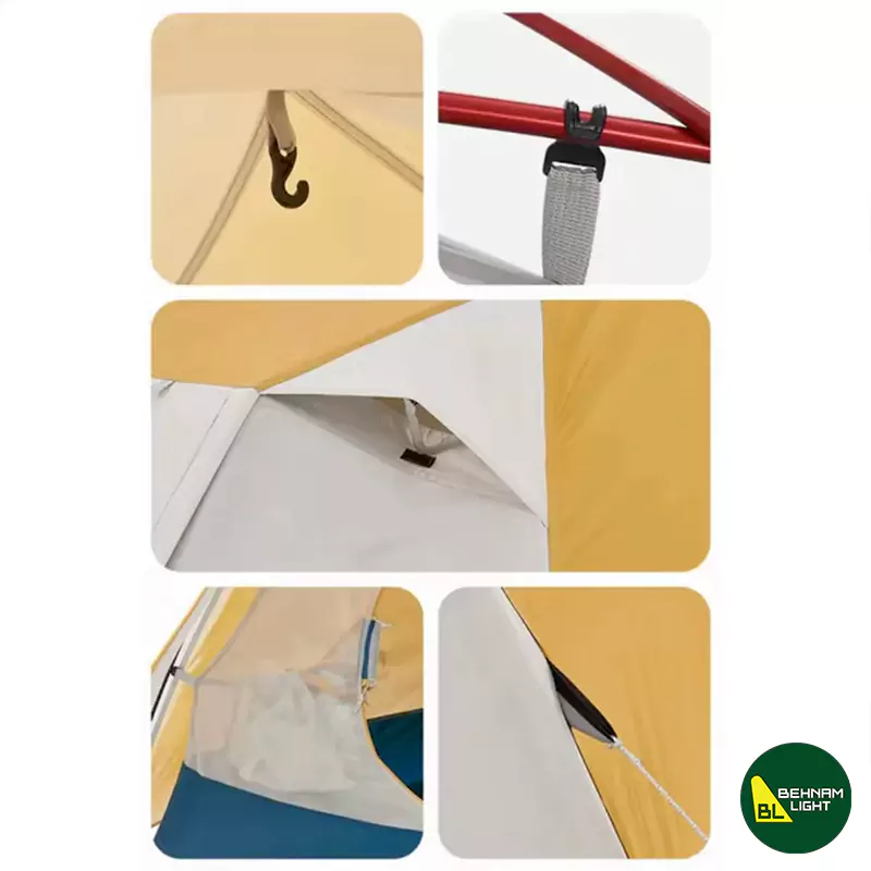 | تهویه و دریچهها | چندگانه و هوشمند، گردش هوای مناسب، جلوگیری از بخار و حفظ دمای متعادل داخل چادر |
