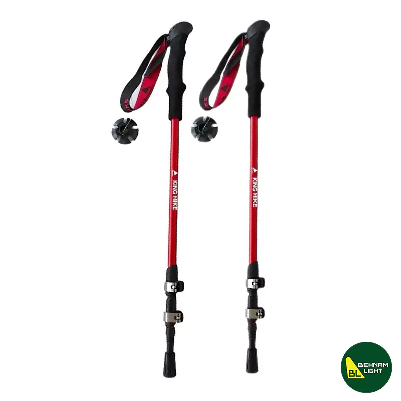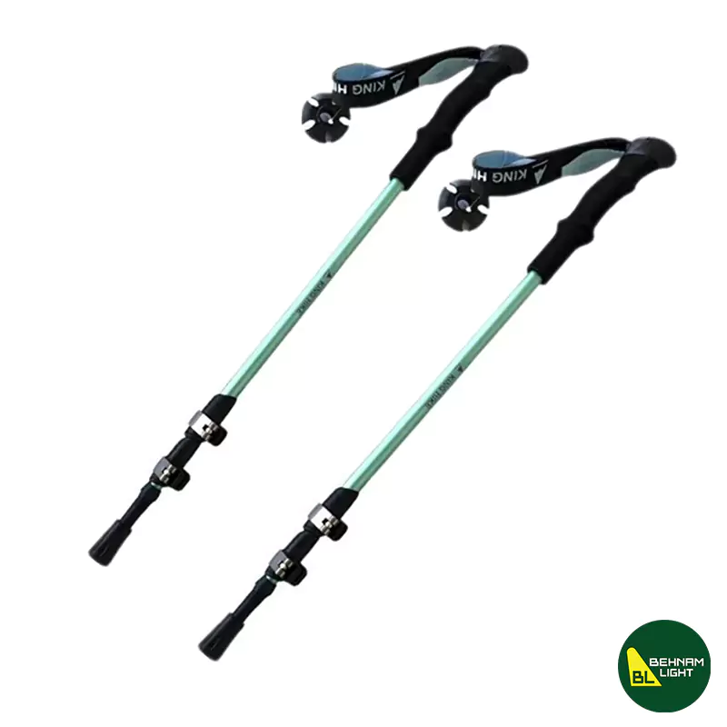 باتوم فلزی کینگ هایک مدل HK97 پک 2 عددی با طول 63 تا 135 سانتیمتر، وزن هر باتوم 230 گرم، قفل کلیپسی دو مرحلهای و رنگبندی متنوع، مناسب کوهنوردی، تراکینگ، هایکینگ، شکار و طبیعتگردی