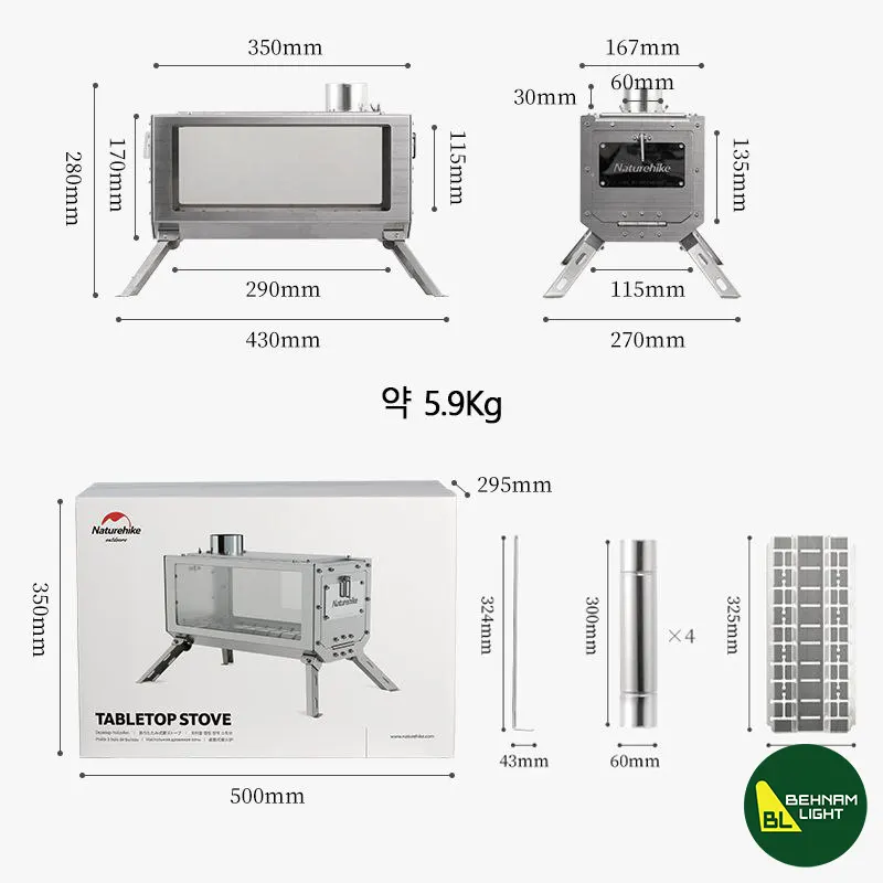 - وزن اجاق : 5.9 کیلوگرم (بدون لوله دود)