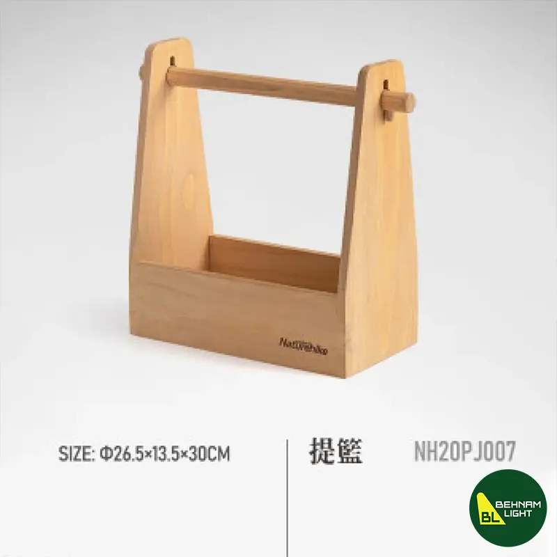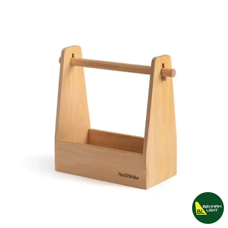 سبد نگهداری وسایل فضای باز نیچرهایک مدل NH20PJ007 از چوب کاج نیوزیلندی با طراحی ارگانیک و مقاوم در برابر رطوبت. مناسب برای نگهداری بطریها، نوشیدنیها، ظروف سفره و دستمال کاغذی با قابلیت حمل آسان