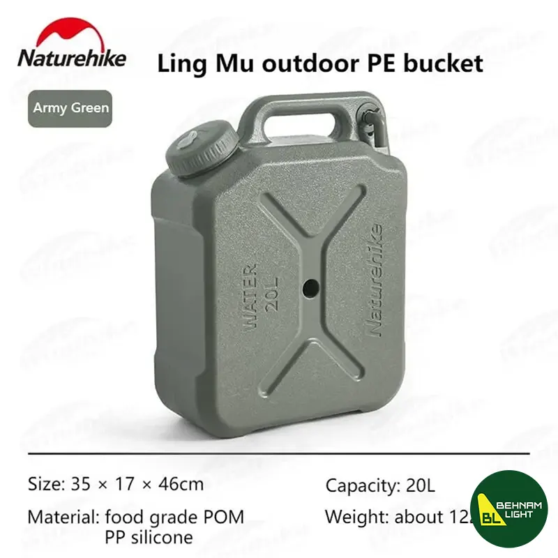 گالن آب نیچرهایک | Naturehike مدل CNH22CJ018 در دو ظرفیت 12 و 20 لیتری، ساختهشده از پلیاتیلن و پلیپروپیلن با درجه غذایی، سبک، مقاوم و مناسب برای سفر، کمپینگ، خودرو و نگهداری آب و مواد غذایی