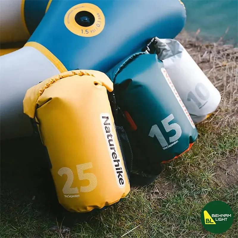 درایبگ نیچرهایک مدل CNK2300BS017 با ظرفیت 25 لیتر، ضدآب و مقاوم، مناسب برای سفر و فعالیتهای بیرونی. دارای رنگبندی متنوع سفید، زرد و سبز و طراحی کاربردی برای حمل آسان تجهیزات.
