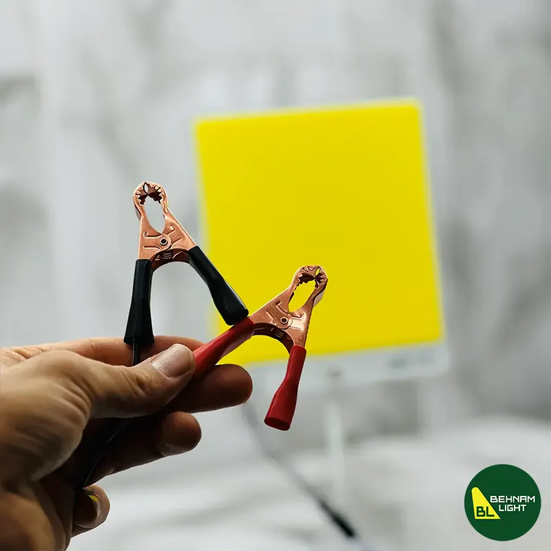 | اقلام همراه | استند آهنربایی، پنل لامپ، ریموت کنترل، شارژر فندکی، کابل 5 متری، کیف حمل، گیره باتری، میله منعطف متصل به استند |