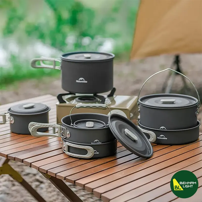 ست ظروف چهار تکه نیچرهایک مدل CNK2450CF010؛ شامل قابلمه بزرگ 3 لیتر، قابلمه 1.7 لیتر، ماهیتابه 8 اینچ و کتری 0.8 لیتر. ساختهشده از آلومینیوم آلیاژی 3003 با روکش تفلون، وزن 1500 گرم و مناسب برای 4 تا 7 نفر. انتخابی ایدهآل برای آشپزی در کمپینگ و سفر