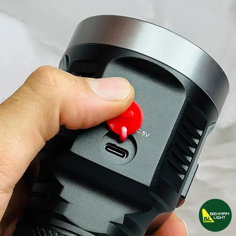 چراغ قوه اسمال سان مدل ZY-T228 با قدرت روشنایی 2800 لومن، برد نور 650 متر، باتری 9600 میلیآمپر با شارژدهی 4 تا 5 ساعت، ضد آب، بدون زوم و دارای سه حالت نور برای کمپینگ و استفاده روزمره