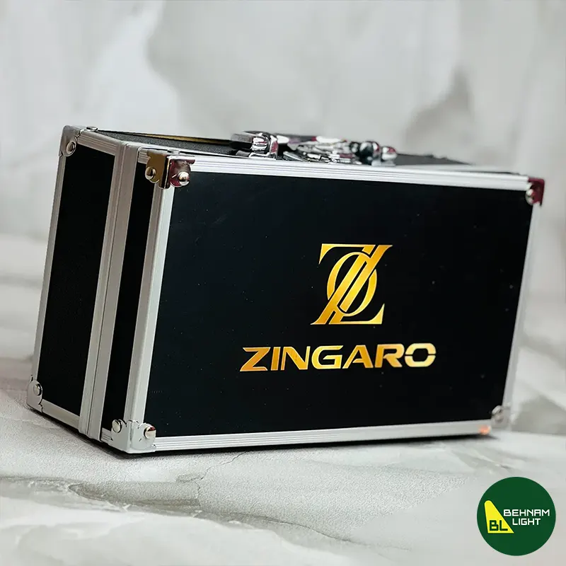چراغ قوه زینگارو مدل 889؛ چراغ دستی مقاوم با برد نور 1000 متر، 5 حالت نوردهی، باتری 10000 میلیآمپر، قابلیت تنظیم کانون و خروجی پاوربانک. مناسب کمپینگ و استفاده روزمره